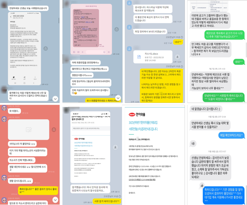 저는 매년 대기업, 공기업을 포함하여 여러 기업 채용에서 다수의 합격자를 배출하고 있습니다. 수년간의 경험과 노하우를 바탕으로, 지원자 한 분 한 분에게 최적화된 맞춤형 컨설팅을 제공합니다. 삼성화재 합격, 더 이상 꿈이 아닙니다! 저와 함께라면 현실로 만들 수 있습니다.