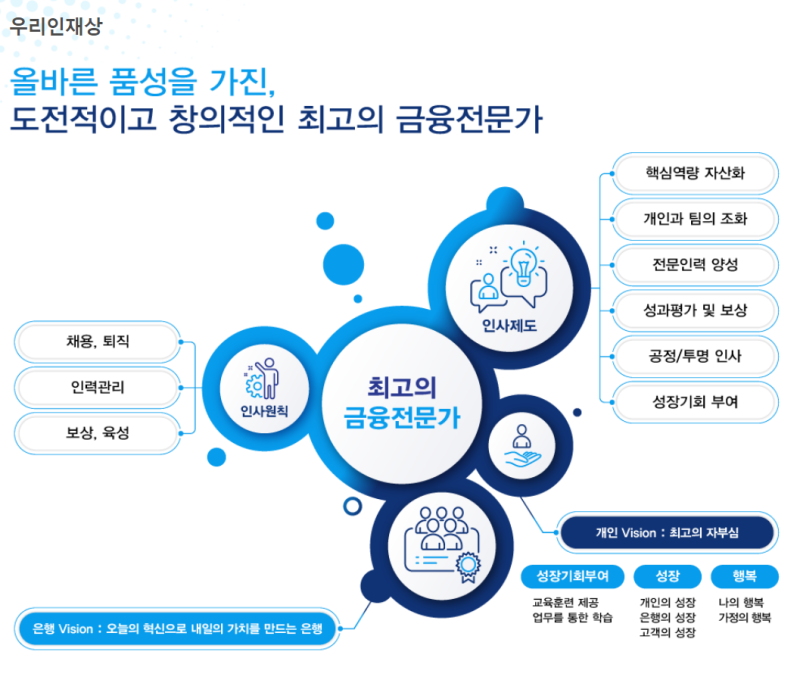 우리은행은 대한민국 대표 은행 중 하나로, 예금, 대출, 신탁, 외환 등 다양한 금융 상품과 서비스를 제공합니다. 특히, 최근에는 디지털 금융 혁신에 박차를 가하며, WON 뱅킹을 중심으로 차별화된 고객 경험을 제공하고 있습니다. 우리은행은 고객 중심 경영을 최우선 가치로 삼고, 사회적 책임을 다하는 은행으로서의 역할을 강화하고 있습니다. 또한, ESG 경영을 통해 지속 가능한 성장을 추구하며, 미래 금융 시장을 선도하기 위해 노력하고 있습니다.