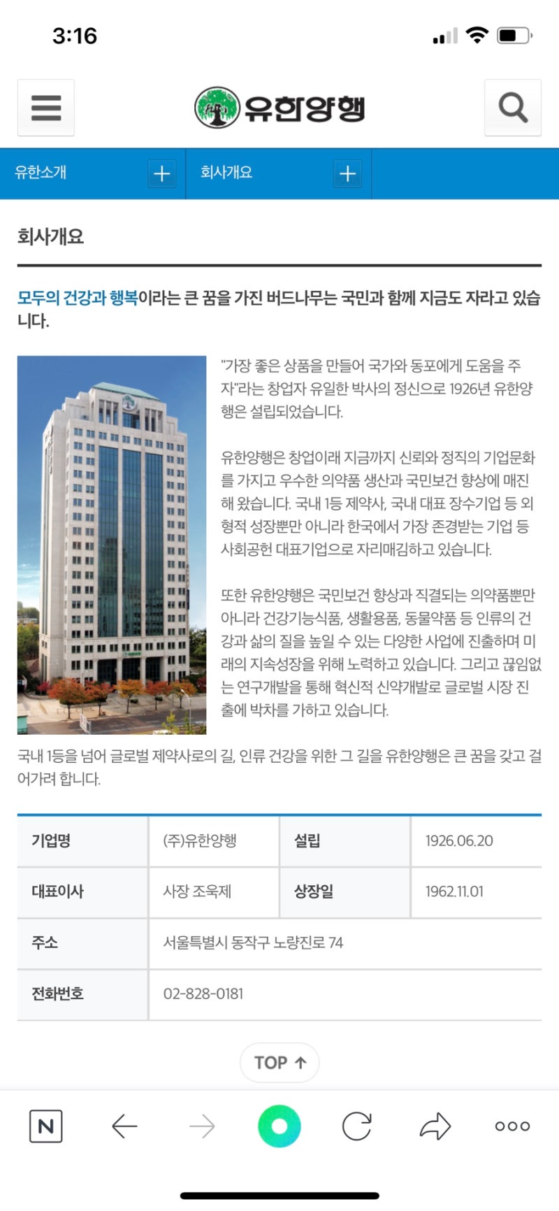 ▶ 주요 사업: 전문의약품 (신약 개발, 라이선스 인), 일반의약품 (안티푸라민, 삐콤씨 등), 생활건강 (유한락스, 해피홈 등), 해외사업 (원료의약품 수출, 라이선스 아웃) 등 폭넓은 헬스케어 사업 영역을 보유하고 있습니다.