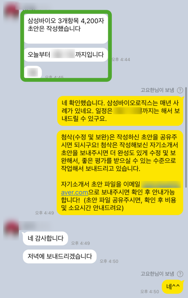 삼성바이오로직스 합격 자소서 첨삭 후기! 대기업 취업, 전문가 손길로 완성!