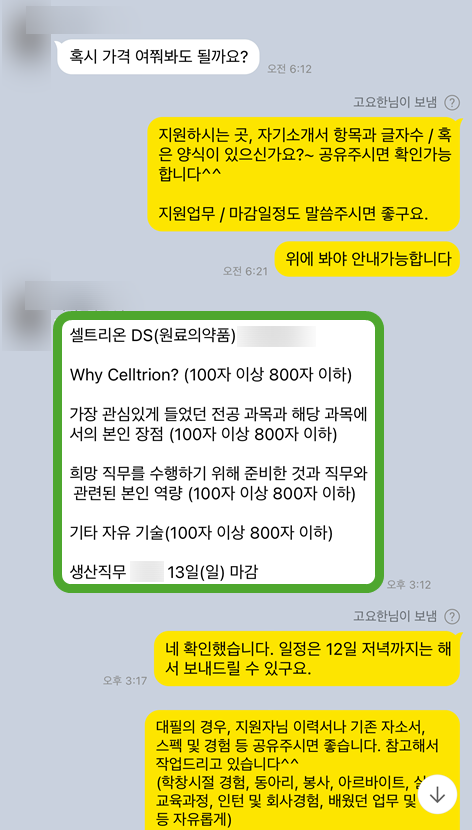 합격률을 높이는 제약/바이오 자소서 전문가, 종근당 자기소개서 맞춤 대필 후기
