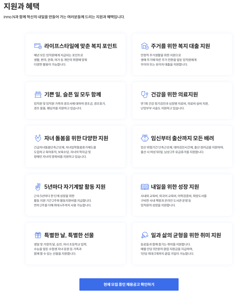 - 인재상: 고객 중심, 혁신 추구, 협력 중시, 성과 지향